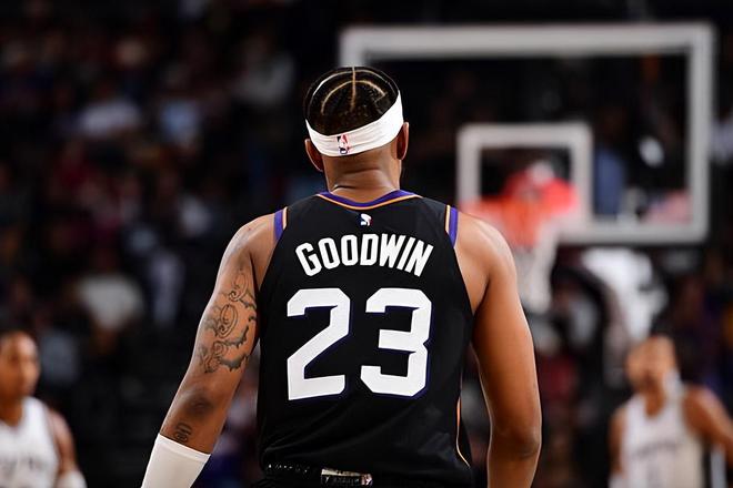 在此前的季前賽中,古德溫總共出場4次,場均出場時間達(dá)到了19分鐘,場均數(shù)據(jù)為12.5分3.3籃板2.3助攻1.8搶斷0.3蓋帽,還有1.8次失誤和2.3次犯規(guī),投籃命中率46.2%,三分命中率38.9%,罰球命中率70%。憑借著在季前賽期間的不俗表現(xiàn),太陽最終選擇了留下古德溫,他也是搭上了球隊大名單的末班車。本賽季開季至今,古德溫在前9場比賽中總共出場6次,場均出場時間達(dá)到了13.7分鐘,場均數(shù)據(jù)為4.2分2.2籃板1.2助攻1搶斷0.2蓋帽,還有1.7次失誤和1.7次犯規(guī),投籃命中率32%,三分命中率29.4%,罰球命中率80%。