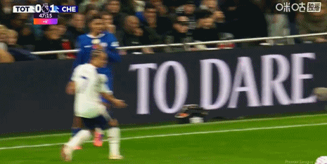 上半場補(bǔ)時(shí)階段,本坦庫爾踹倒里斯-詹姆斯,主裁判賈里德-吉列向熱刺中場出示黃牌。
